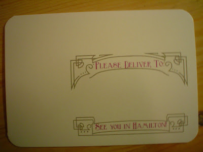 It's a 4x6 postcard, featuring the flowers that they are going to use for the wedding (zinnias-her mom is growing all of them), along with a little picture of the church where they are getting married. They're printing them this weekend- I'll put up a photo of the finished product when I get mine in the mail! Here's a sneak peek at the back (with room for address labels and a quick note from Emma and Drew):